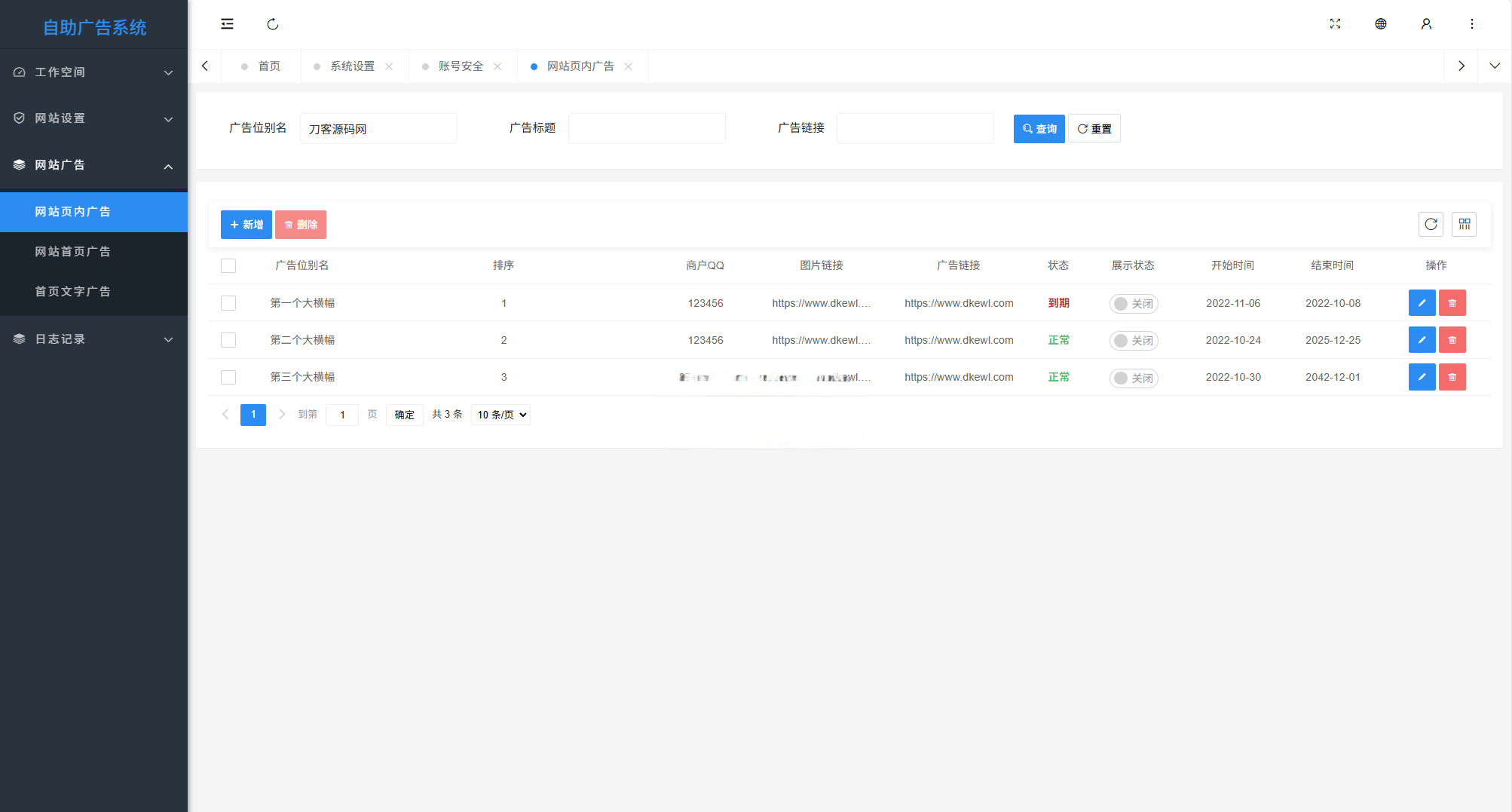 最新全开源版本 网站自助广告投放系统源码 附安装教程