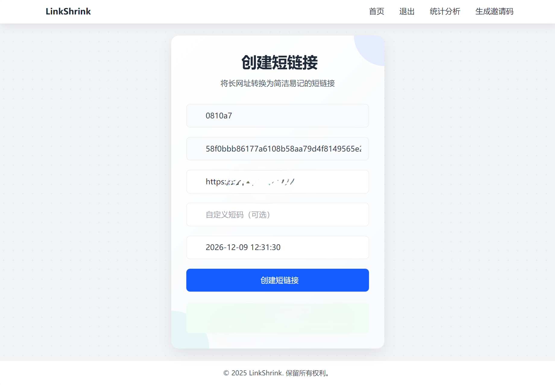 说一下特点吧,短链接格式如同https://域名/0810a7/tlWl6y,其中0810a7区分用户,tlWl6y是短链接的短码