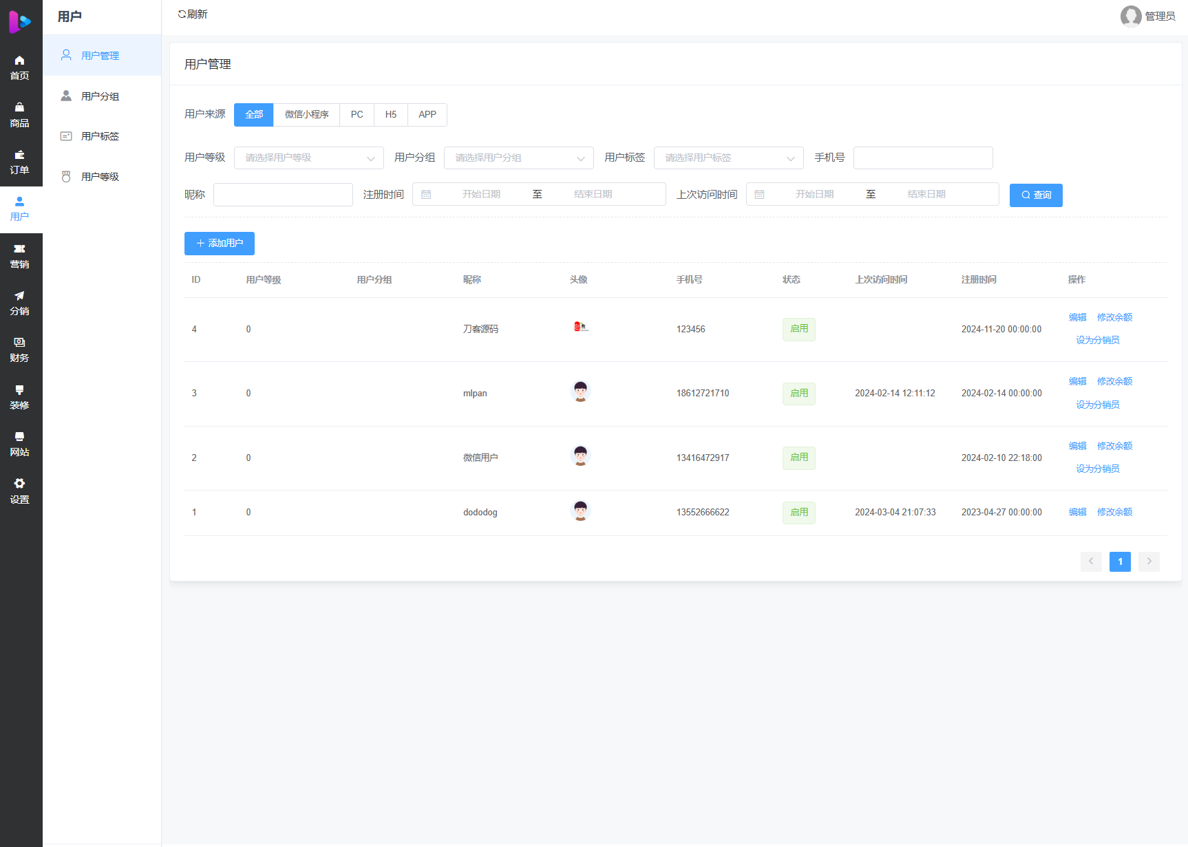 包含小程序商城、H5商城、公众号商城、PC商城、APP