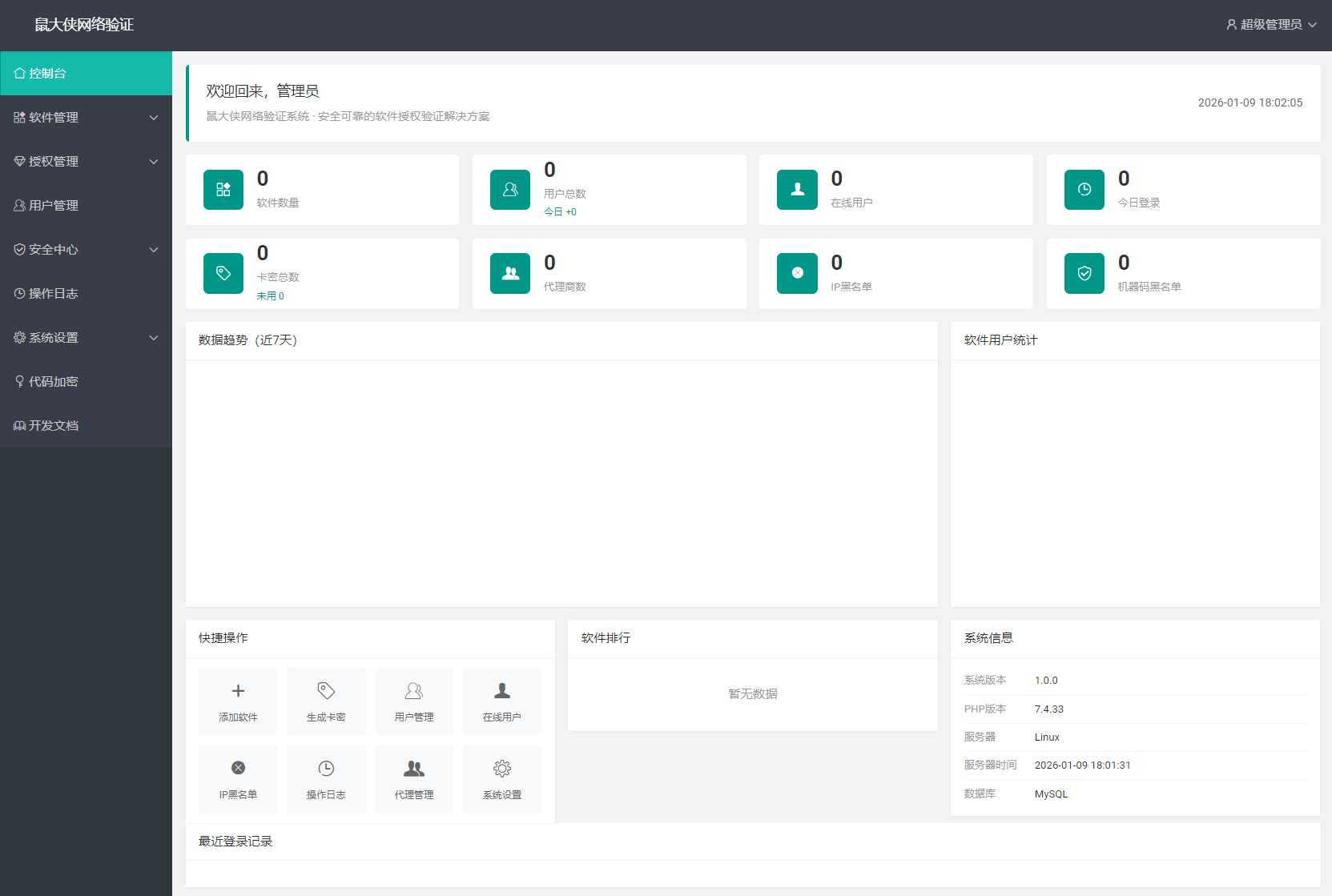 本文由 优码资源网 – admin 发布,转载请注明出处,如有问题请联系我们!鼠大侠网络验证系统源码 一机一码授权验证 全开源